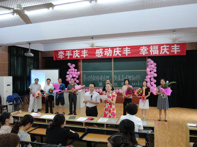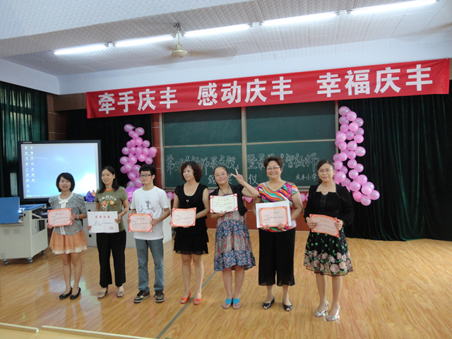 9月10日下午,庆丰街小学举行以“牵手庆丰 感动庆丰 幸福庆丰”为主题的第28个教师节庆祝及“最美情智教师”颁奖仪式。会场上张灯结彩,喜气洋洋,全校教师集中在多功能厅,欢庆自己的节日。