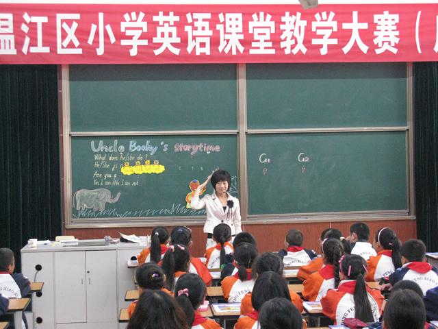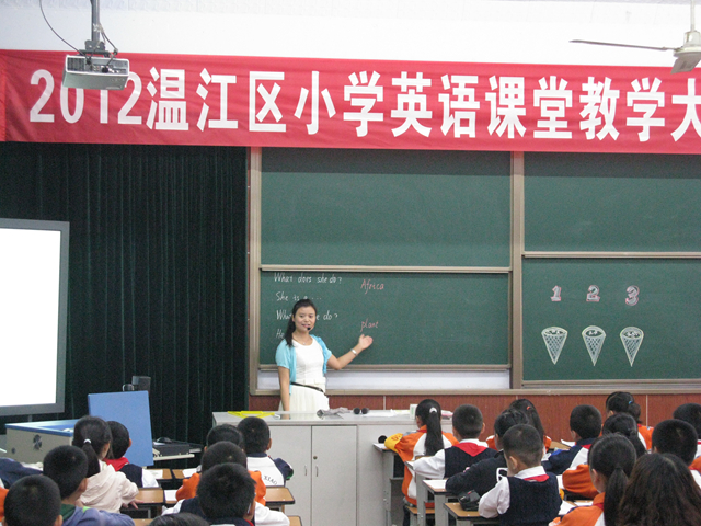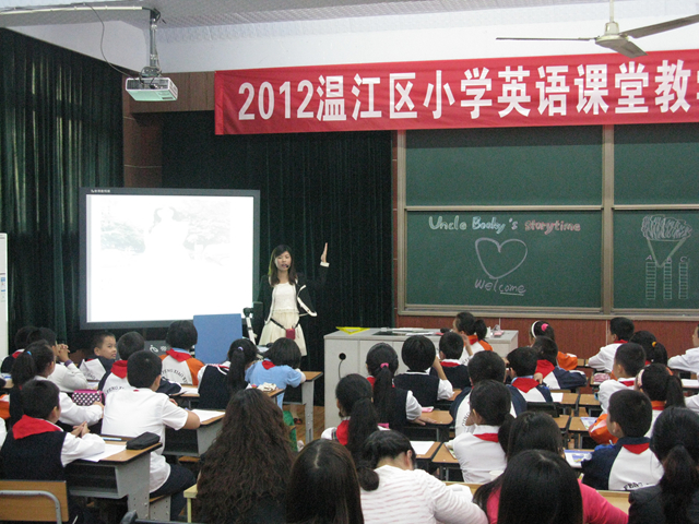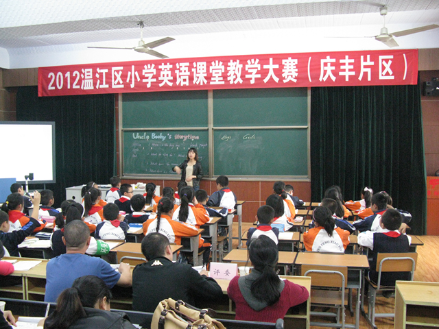 9月18日,“2012年度成都市温江区小学英语课堂教学大赛(庆丰片区)”赛课活动在庆丰街小学隆重举行。来自温江区庆丰街小学、玉石小学、和盛小学、通平小学和寿安学校的5名参赛老师参加了此次赛课活动。