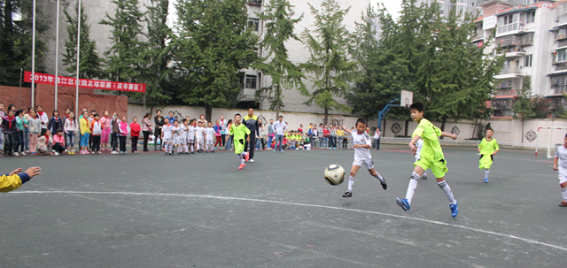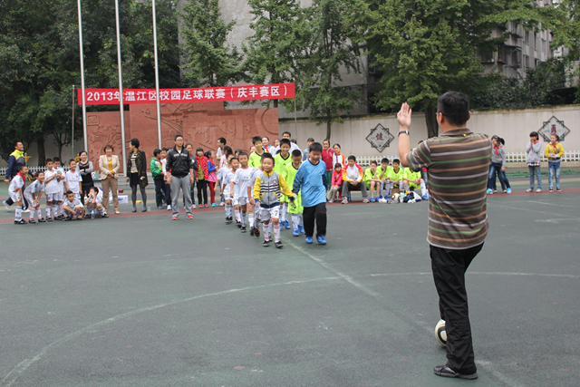 2013年9月26日下午4:00,温江区校园足球联赛(庆丰赛区)在庆丰街小学准时开球。参加首场比赛的双方是庆丰街小学足球队和永宁小学足球队。