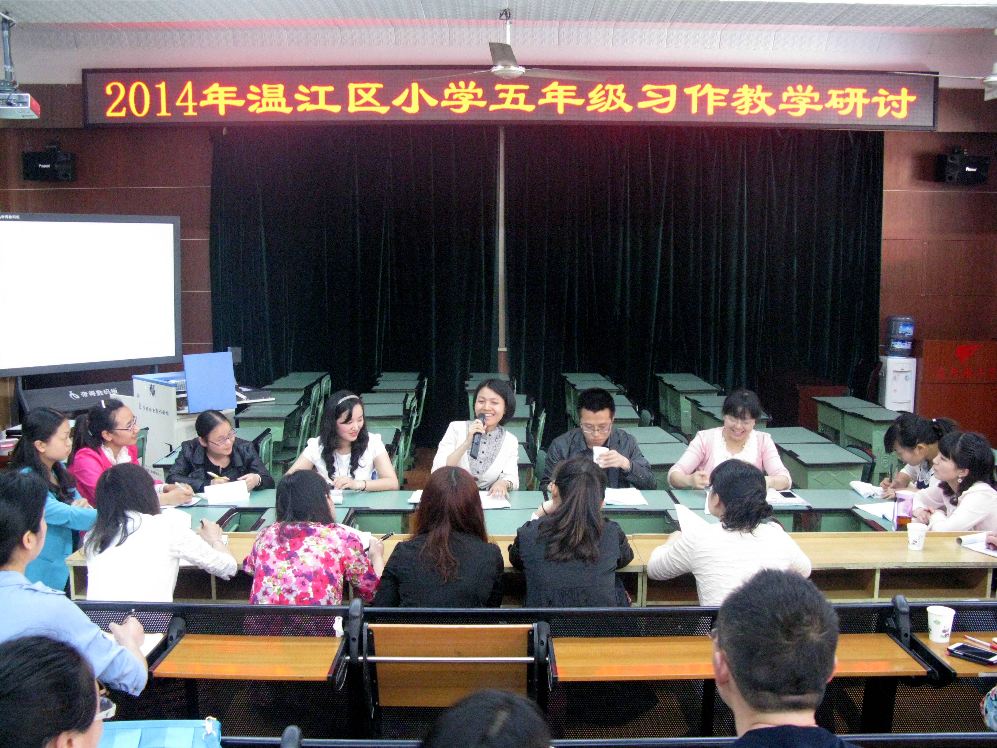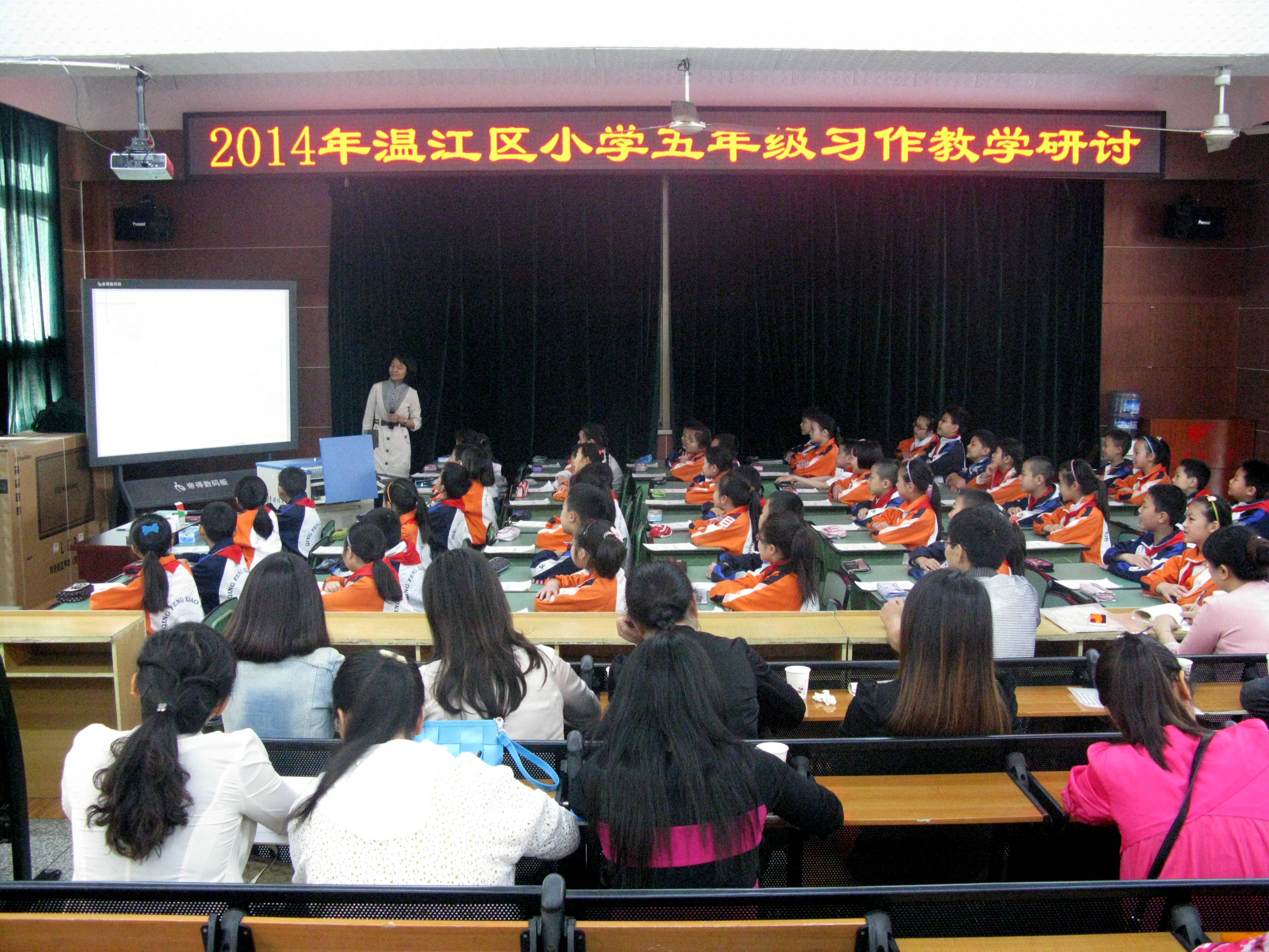 2014年4月24日,温江区庆丰街小学开展了“2014年区小学五年级习作教学研讨”主题活动。温江区教师研究培训中心小学语文教研员卓琼,区小学语文中心组成员,各校五年级语文教师以及庆丰街小学名教师刘秀荣、方万强、刘素萍等参与了本次活动。