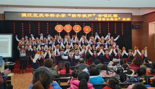 温江区庆丰街小学开展“新年歌声”情智小舞台合唱展演