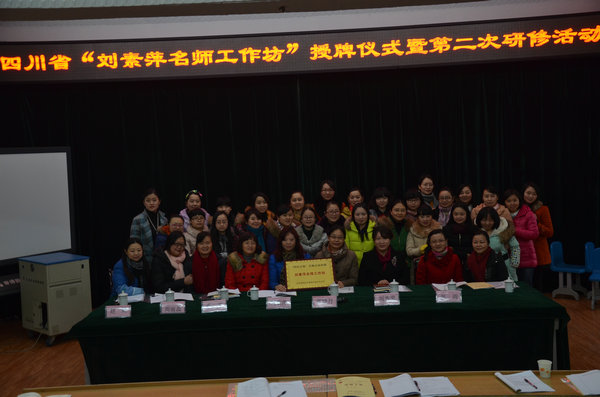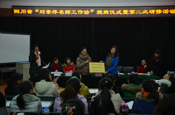 四川省“国培计划”培训专家张晓丹教授介绍了“刘素萍名师工作坊”成立的背景,成员组成,研修模式、研修落实方式及今后的愿景。在进行了授牌仪式后刘素萍老师介绍了名师工作坊的研修规划;随后,高红霞老师代表名师坊成员发言;之后,教育研培中心卓平主任对名师工作坊提出了殷切希望;最后研培中心赵辉主任做了总结发言。