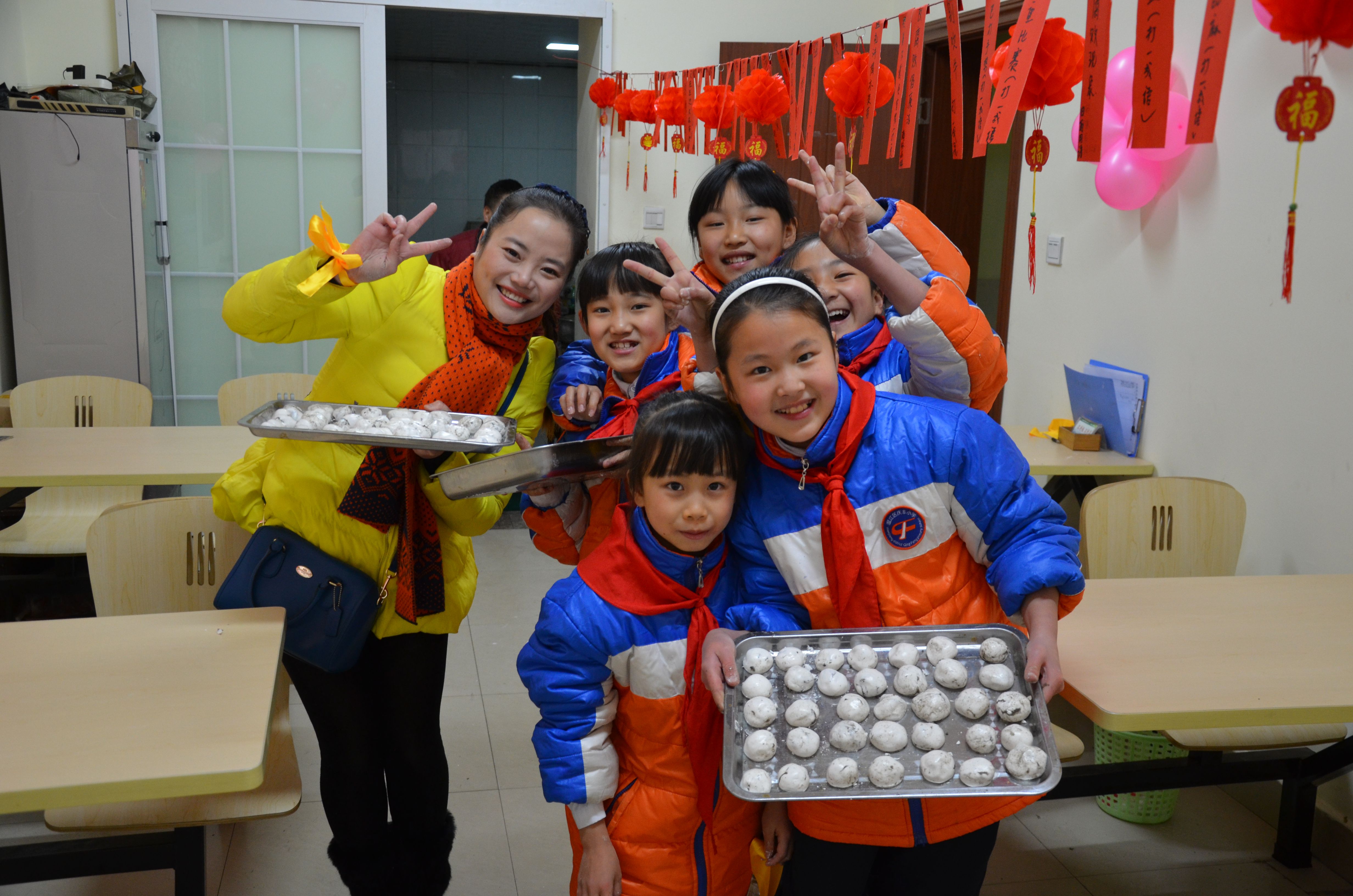 2015年3月5日,适逢中国传统节日“元宵节”、“学雷锋纪念日”,温江区庆丰街小学少先队20余名学生代表在老师的带领下走进社区为身边缺乏亲人关爱的“空巢老人”们包元宵,庆佳节;走上街道,为节日期间辛勤工作的环卫工人们送去碗碗热气腾腾的自己亲自煮好的爱心元宵。