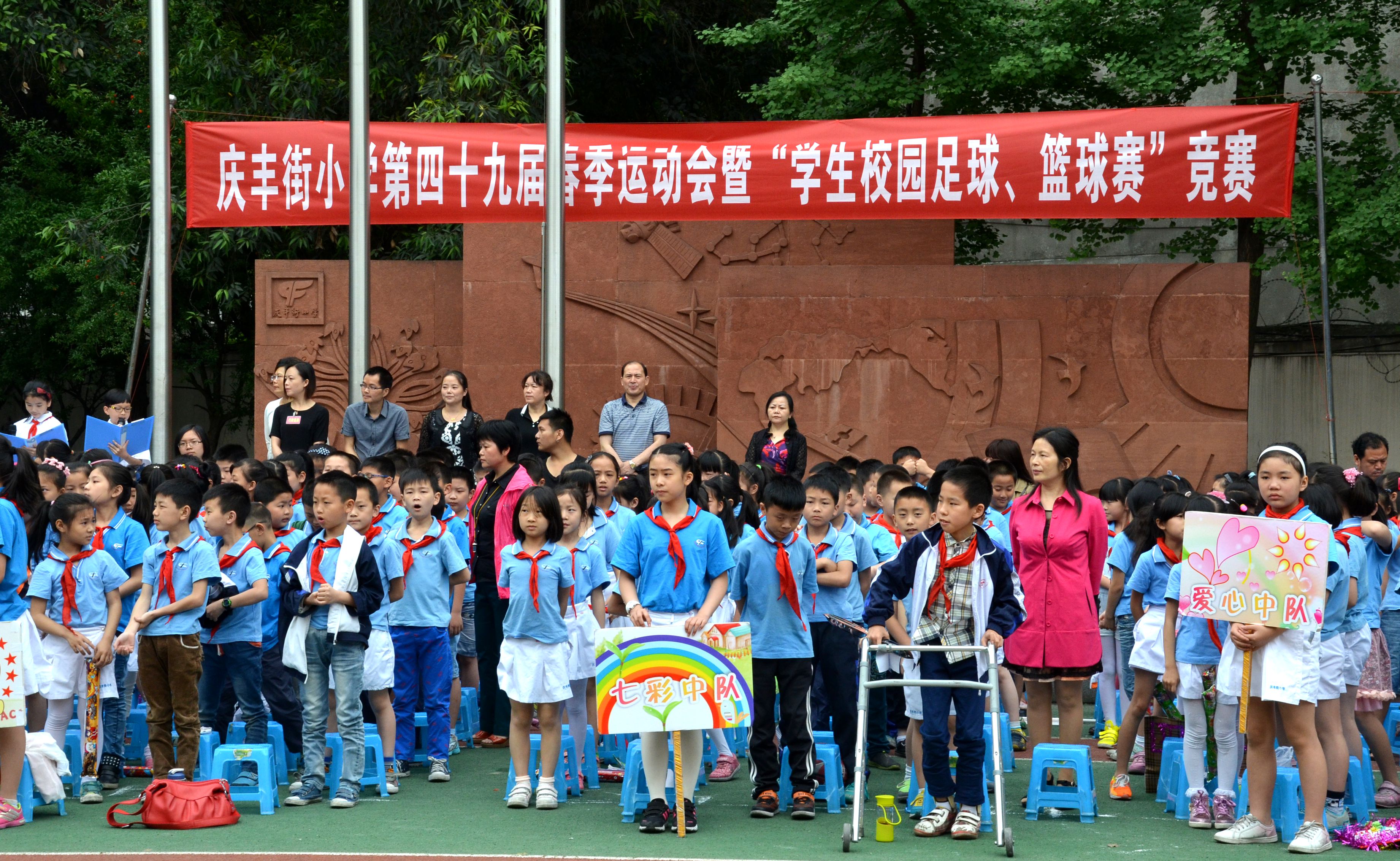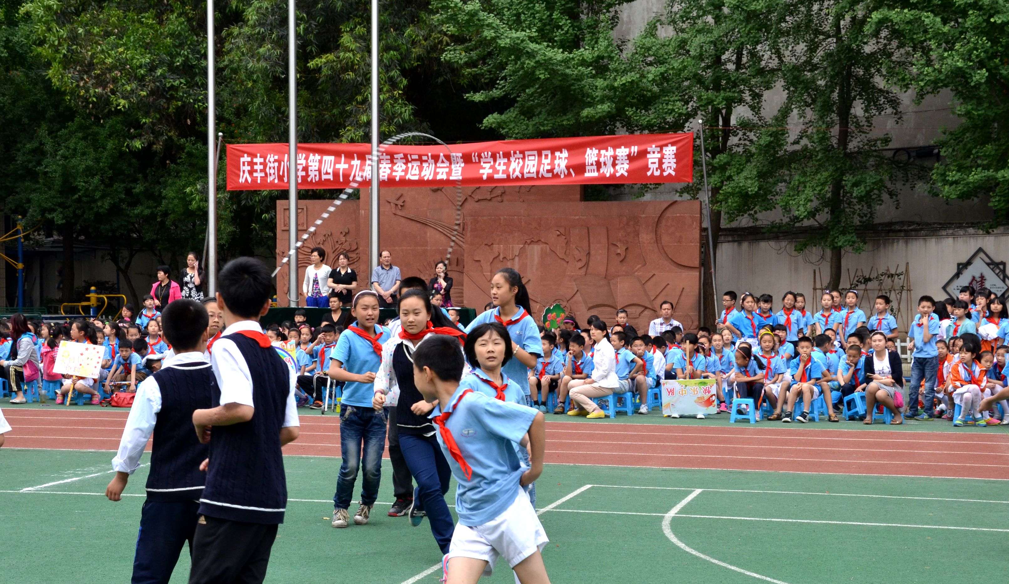 2015年5月11日,庆丰街小学举办第四十九届春季运动会及“学生校园足球、篮球”竞赛。庆丰街小学韦林凤副校长宣布运动会开幕后,全校1828位同学在老师的带领下参加了隆重的运动会入场式。