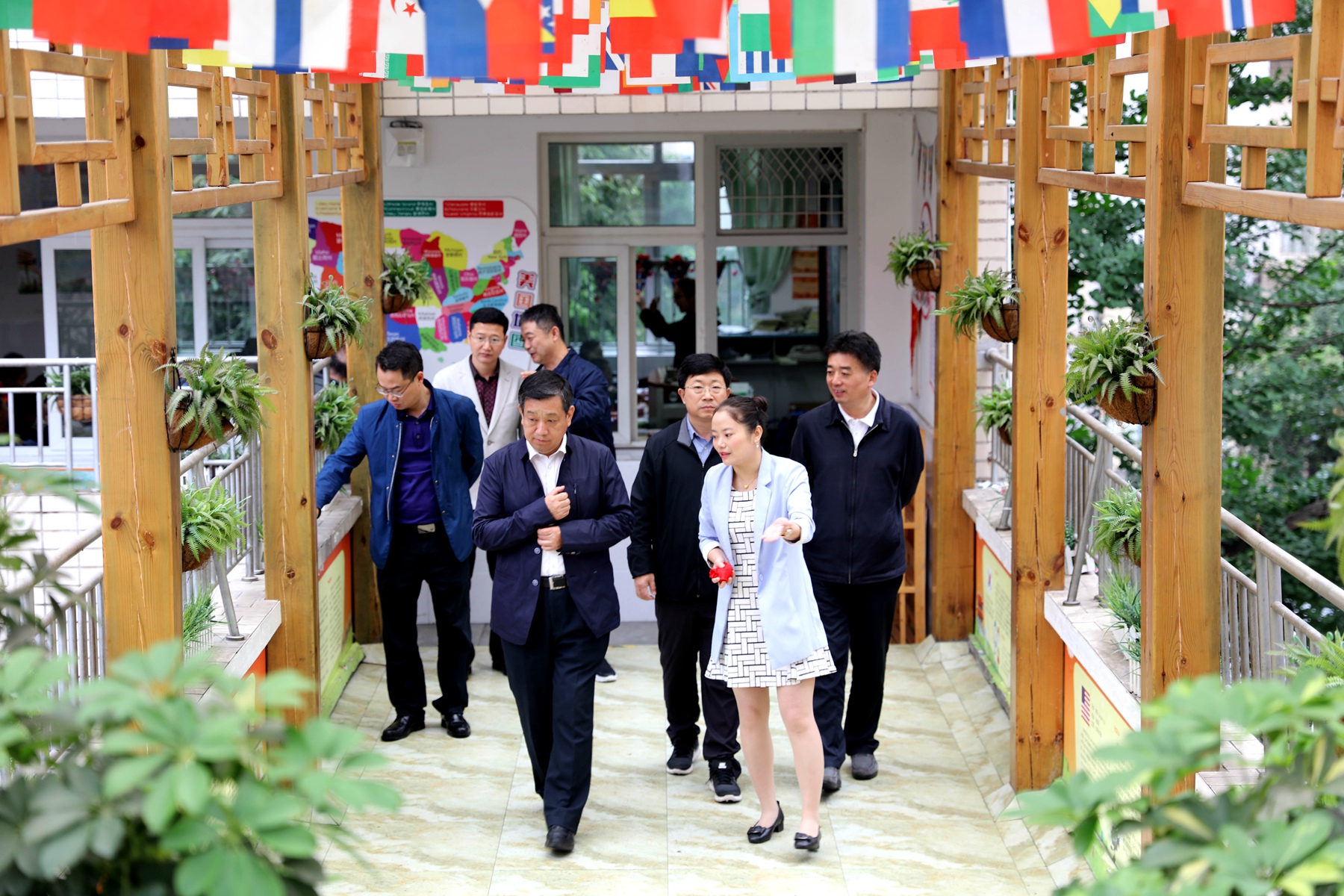 2018年5月10日,山东省德州市教育考察团到庆丰街小学参观访问。德州市教育局局长张书鹏、禹城市教育局局长张祖义、齐河县教育局局长葛富义、德州市教育局办公室主任董志勇一行来到庆丰考察、访问。成都王府外国语学校校长郑白群随同参观。温江区教育局党组成员、纪检组长吴边、庆丰街小学校长黄金强陪同参观。