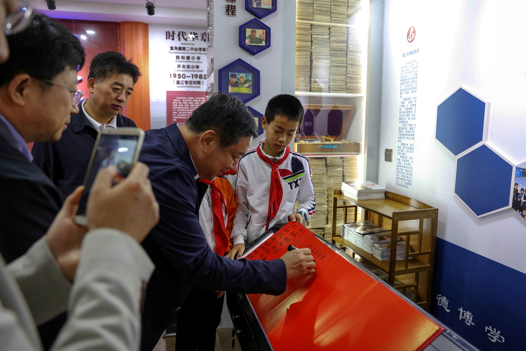 山东省德州市自古就有“九达天衢”、“神京门户”之称,历史悠久,是大汶口文化和龙山文化的发祥地之一。和古蜀国发祥地、万春鱼凫文明起源地的温江一样,解放后,它也经历了设立专区、撤销专区、地市合并等行政区划巨变。校史馆内,相同的历史际遇让两地教育工作者很快就拉近了彼此间的距离。