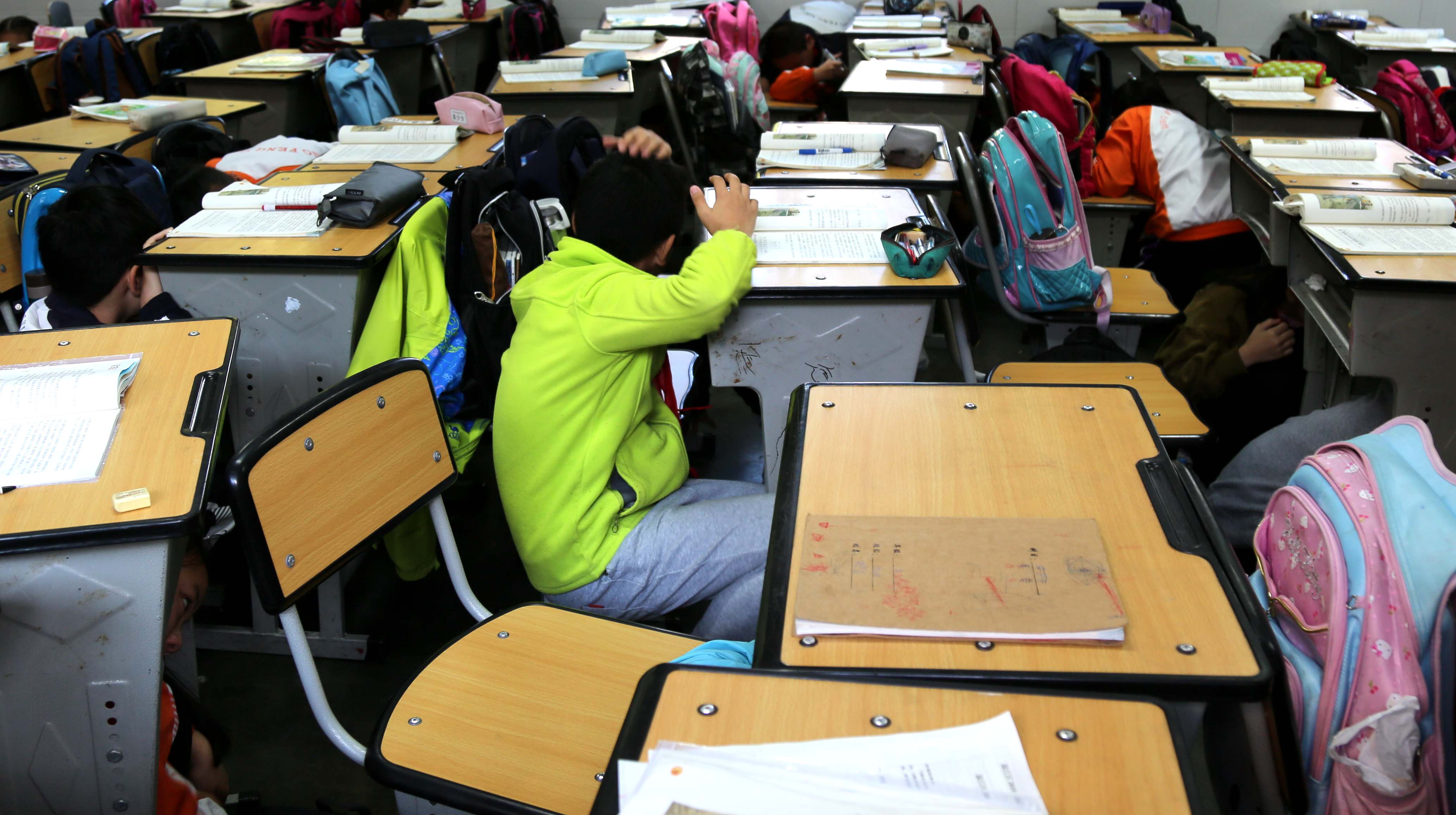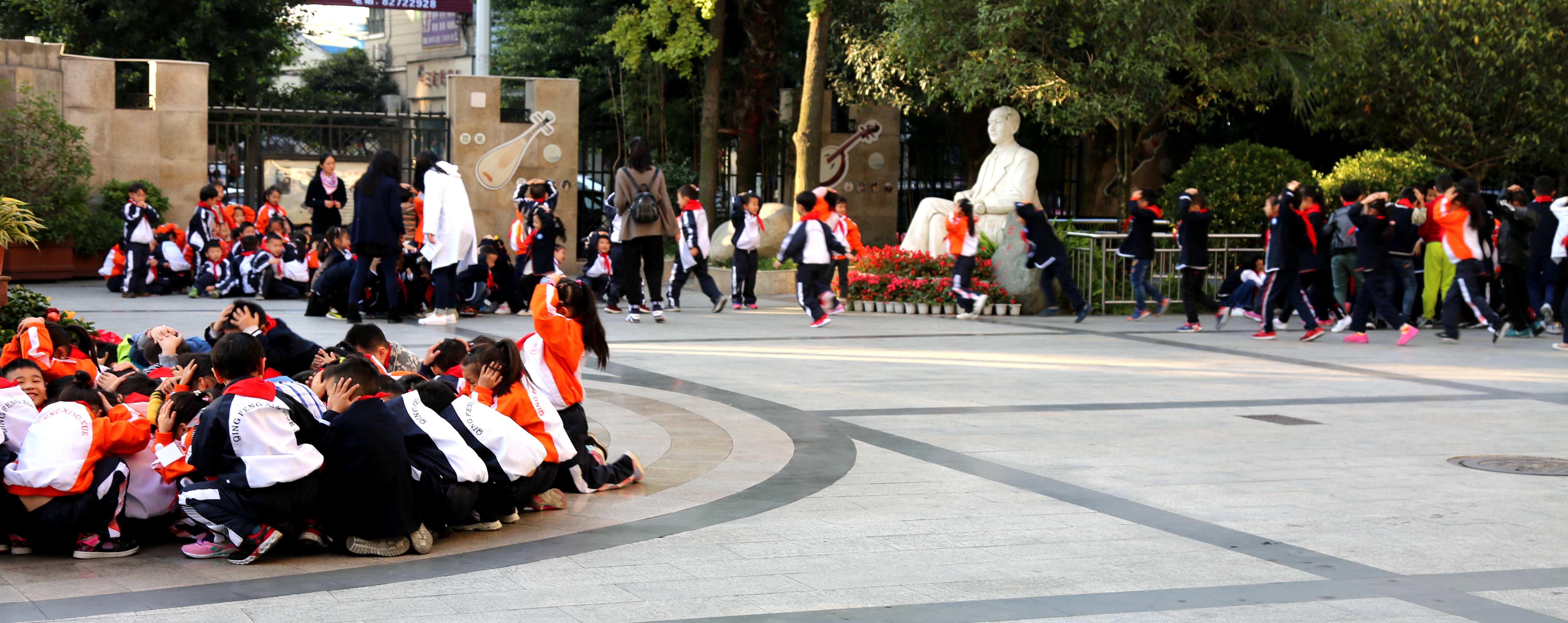 上午9:00,随着地震警报的响起,任课老师立即组织学生快速寻找掩体,双手护住头部躲在课桌底下。在应急安全小组姚懋雷老师指挥下,全体师生按照预案指定的路线,双手抱头,迅速撤离教室,安全有序的到达操场。