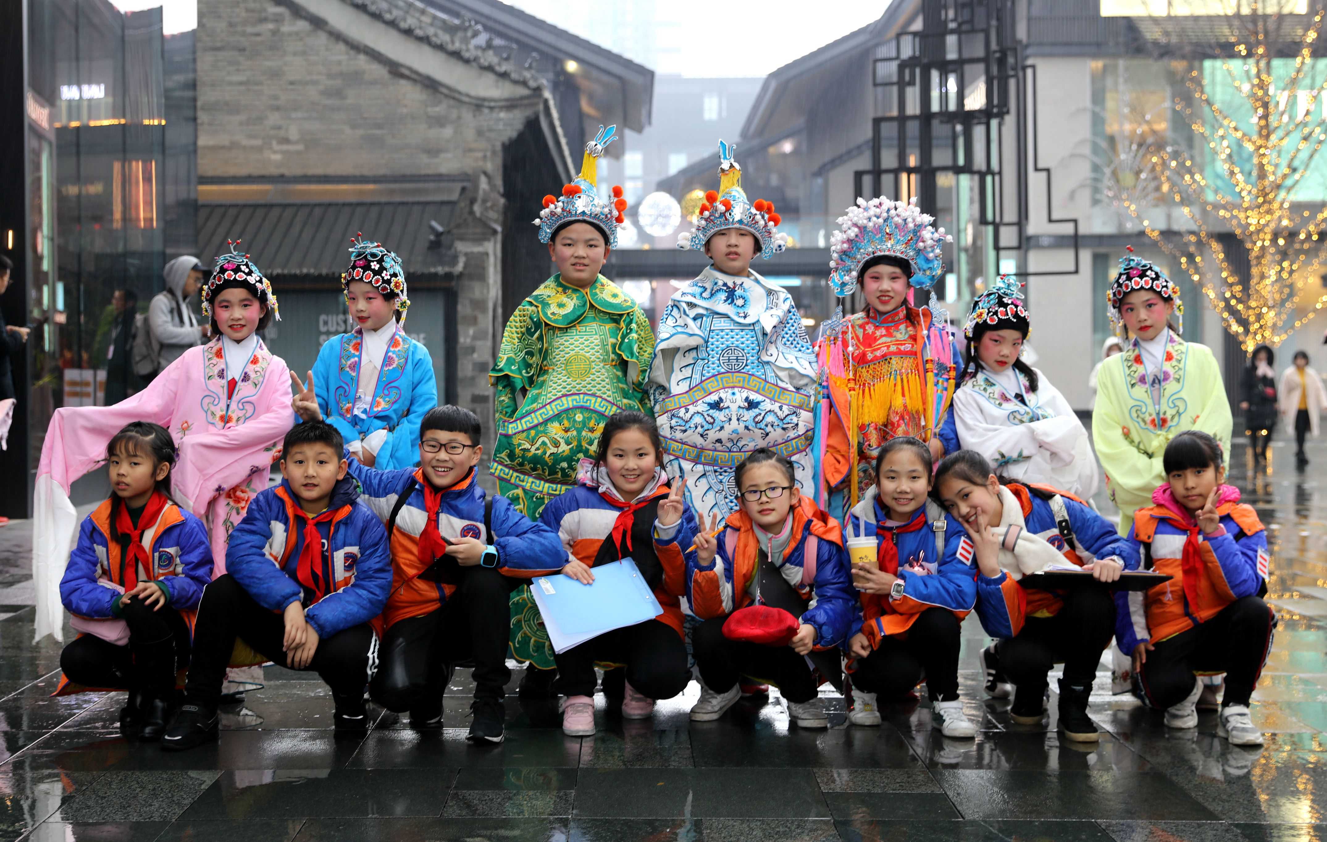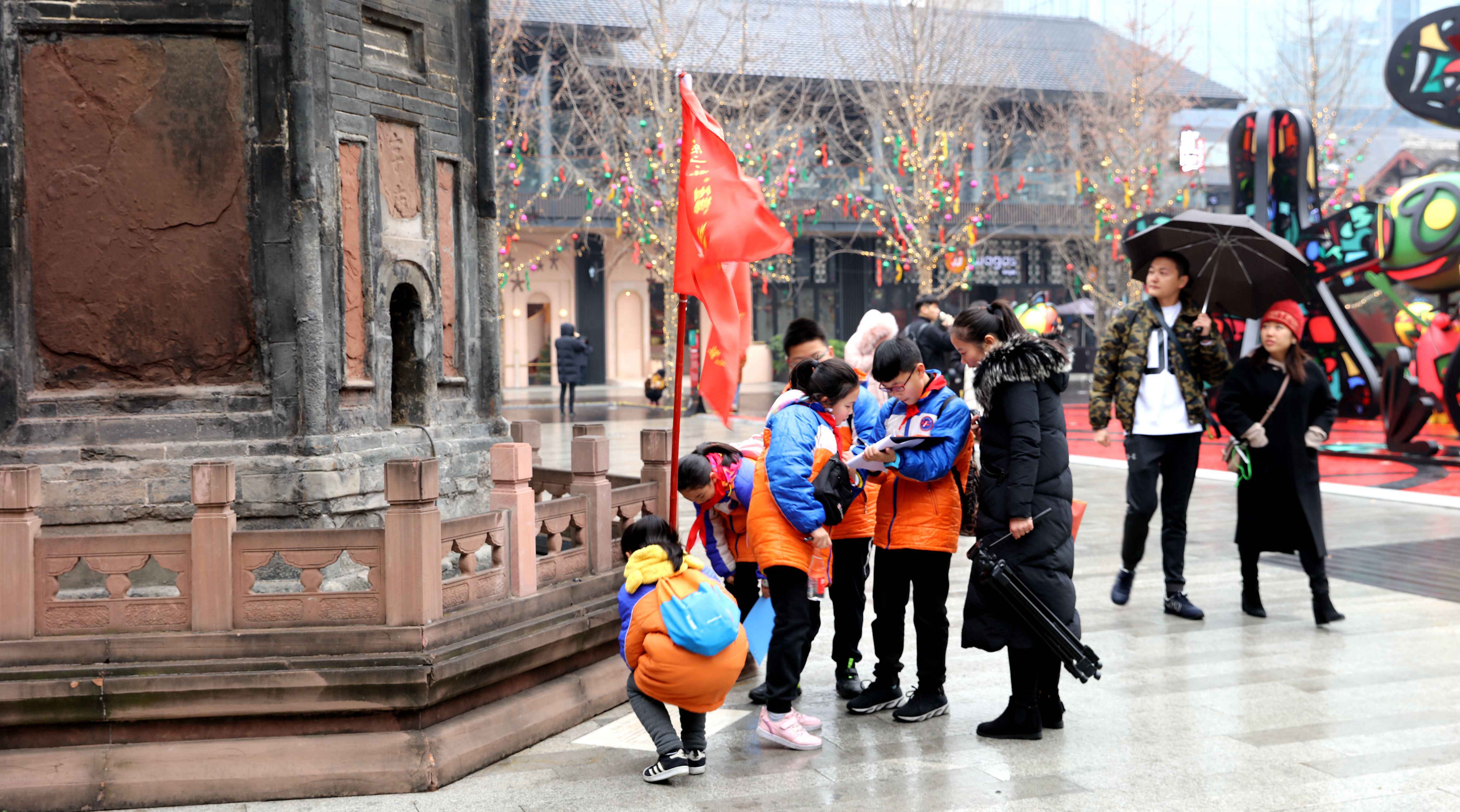 2018年12月27日,庆丰街小学19名“五彩”志愿者来到成都远洋太古里,开展《成都·世界文化名城》国际理解课程。课程的目标是想在繁华黄金地段里寻找现存的天府文化古迹并探寻历史传统如何与现代时尚展开和谐的“对话”。