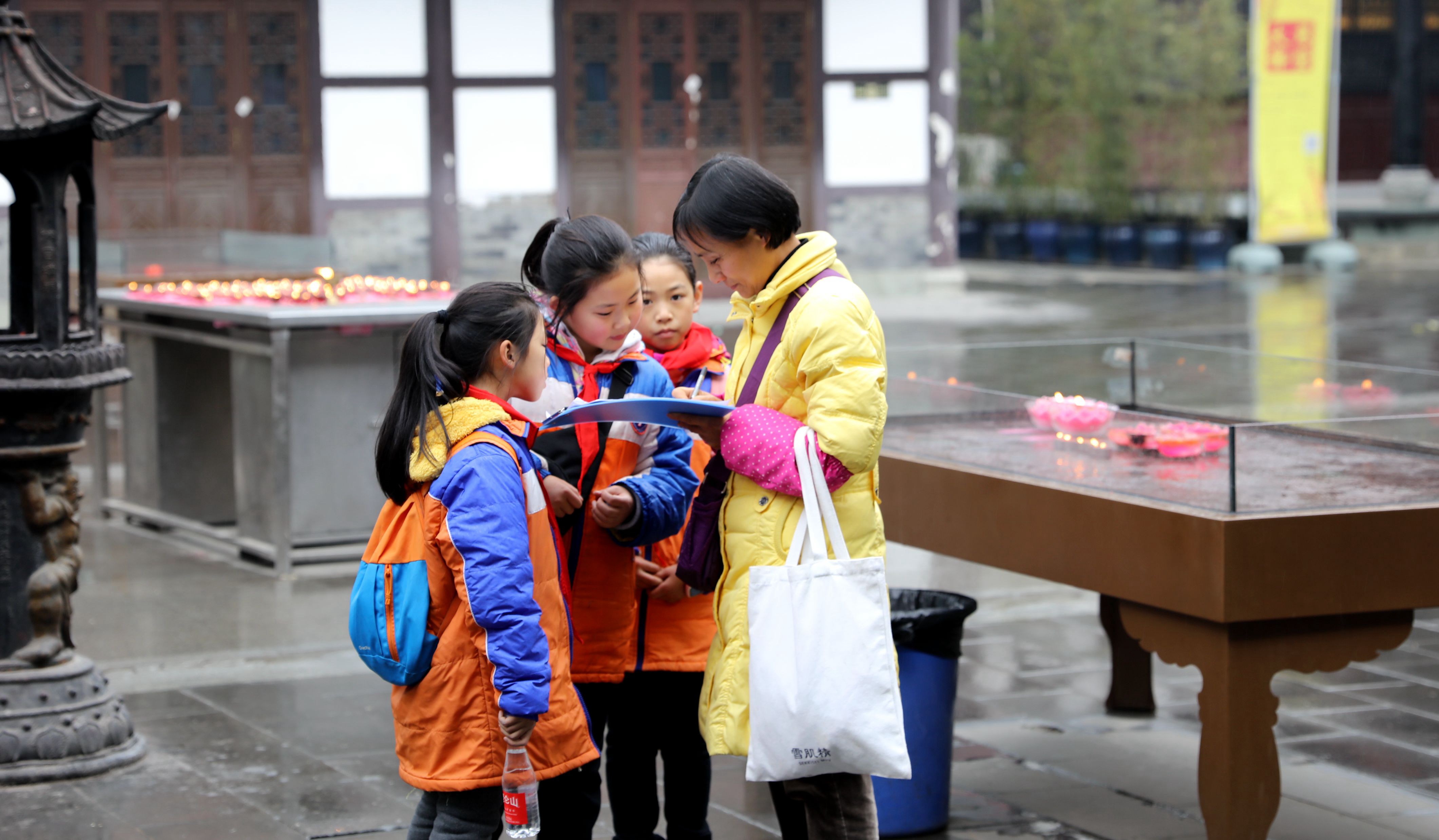 孩子们首先按课程任务单分组展开活动。在他们的课程任务里,天府文化遗存大慈寺、惜字塔、广东会馆、欣庐、崇德里等建筑古迹被设计成一个个需要实地探查求证的问题;世界最美的十五座书店之一——方所、“全球最酷50城市街区”镋钯(tangpa)街、“一个城市的回家路”崇德里、大慈寺里呆萌可爱的网红小和尚“圆一”、各大时尚品牌秀场等现代时尚也囊括其中。课题研究之余,这些小志愿者们还要完成一个调查问卷。了解全球旅行者对“天府文化”的基本认识和发展建议。