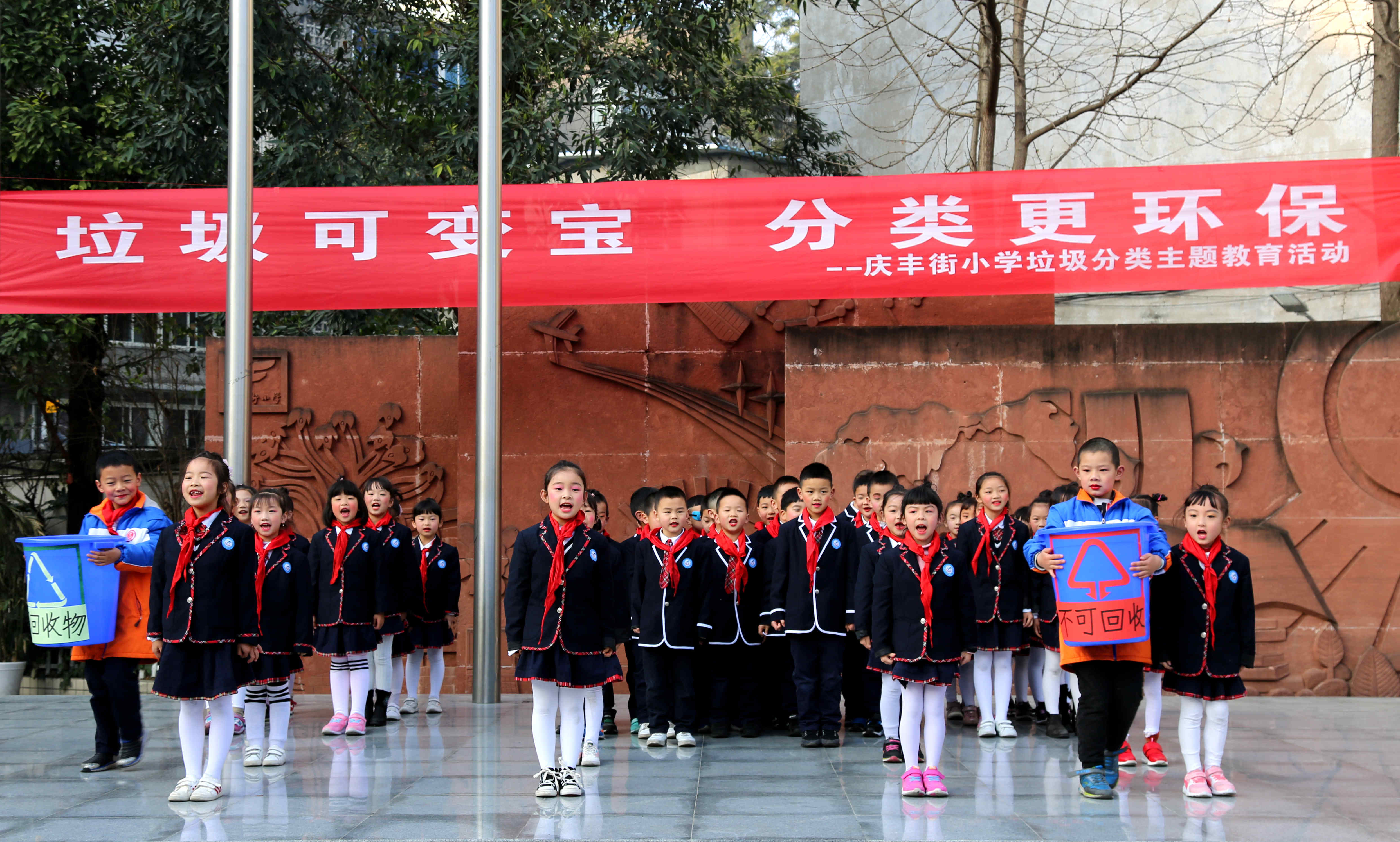 垃圾是放错了位置的资源。为大力开展垃圾分类的宣传工作,使全体学生树立垃圾分类的环保意识,养成垃圾分类的好习惯,庆丰街小学校在3月11日全校升旗仪式上,开展了“垃圾可变宝,分类更环保”的垃圾分类主题教育活动。