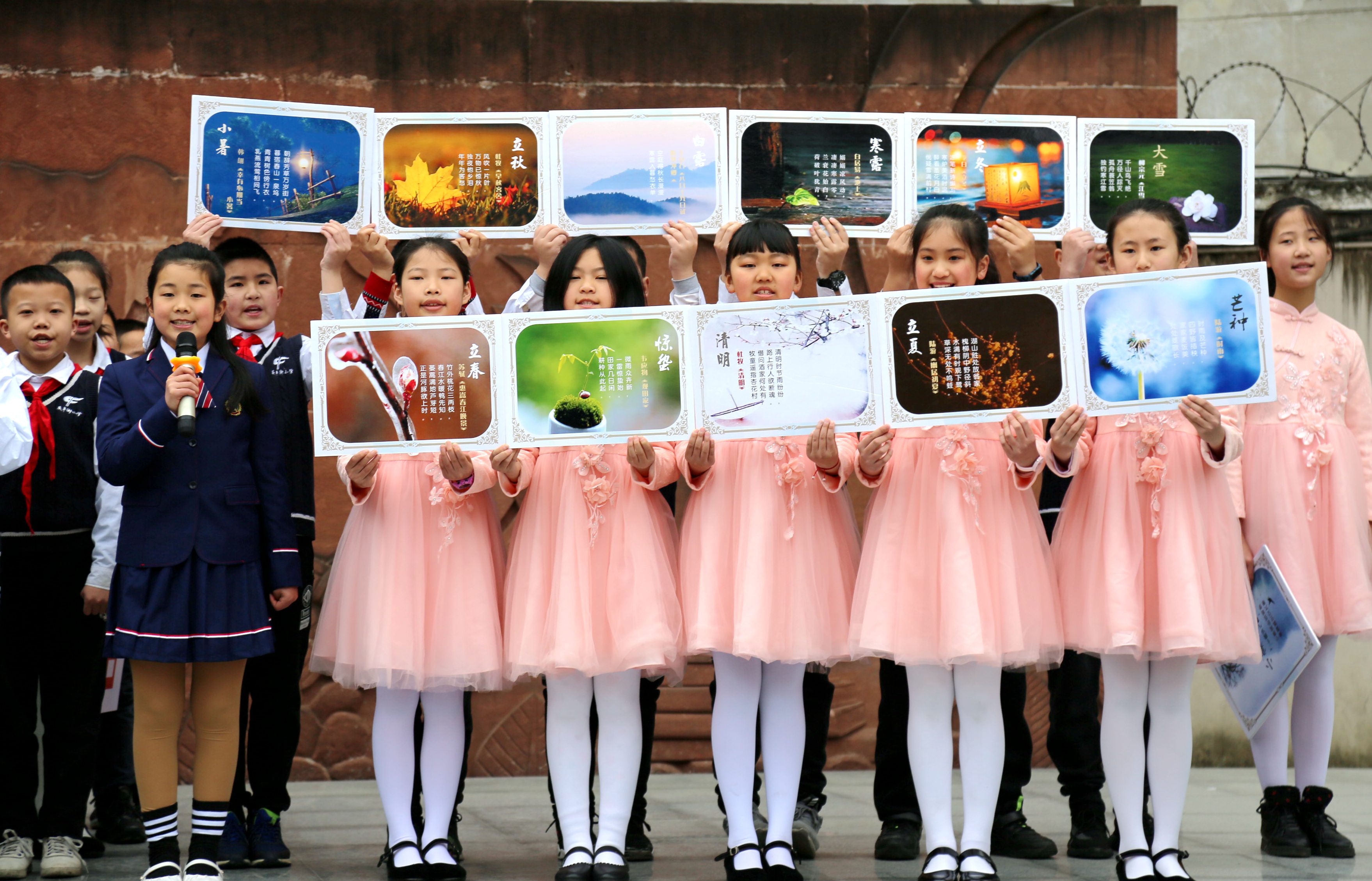 第一幕,小主持们以预报当天天气开始,在中央电视台天气预报的音乐声中,几位小主持人的一问一答,将水资源的相关知识潜移默化地浸润到全校师生的心中。第二幕,同学们以二十四节气为题,朗诵了二十四节气诗送给大家,熟悉的诗句引起全校师生集体共鸣。