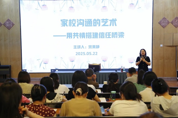 学生发展中心主任张利以“如何开好家长会”为题进行分享。她从家庭教育指导的重要性,家长会的主题、内容确定,交流方式选择,活动方案设计等方面做了详细讲解。