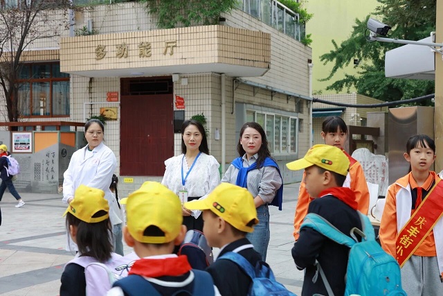 十月的庆丰街小学,秋阳温柔地铺满校园,金黄落叶与孩童笑声交织,每一处角落都浸透着独有的诗意。今天,我以“值日校长”的身份,沉浸式走进这份美好,解锁了校园里一段段鲜活时光。清晨 7 点 40 分,校门口早已井然有序。我与徐校长、护学岗老师并肩而立,礼仪队同学身着整洁校服,身姿挺拔。“老师好” 清脆的问候此起彼伏,孩子们行着标准队礼,稚嫩的脸庞满是朝气,我也渐渐融入 “值日校长” 的角色。每当老师步入校园,礼仪队为首的同学便响亮喊出 “向老师敬礼”,整齐的问候声温暖了晨光;遇到未穿戴好红领巾、小黄帽的孩子,礼仪队同学会认真记录班级姓名,再反馈给班主任,用细致行动帮大家养成好习惯。8 点的操场,晨光正好。随着《义勇军进行曲》奏响,五星红旗缓缓升起,全校师生肃立注目,朝阳下的国旗愈发鲜艳。升旗仪式后,一年级一班的小朋友们带来“爱惜粮食” 主题展示:有的举着金黄稻穗卡片,有的捧着迷你“饭碗” 道具,生动演绎间,操场响起阵阵掌声,孩子们认真的模样格外动人。