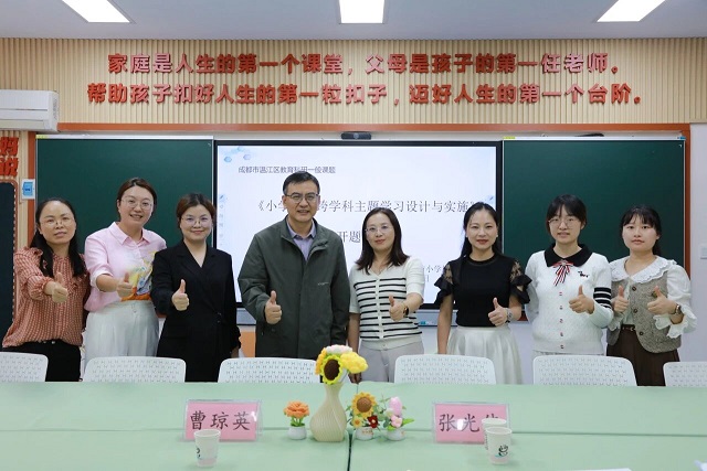 2025 年 10 月 16 日下午,温江区庆丰街小学校区级课题 “小学数学跨学科主题学习设计与实践” 开题论证会,在学校教子坊顺利举行,会议由课题组邹莉老师主持。