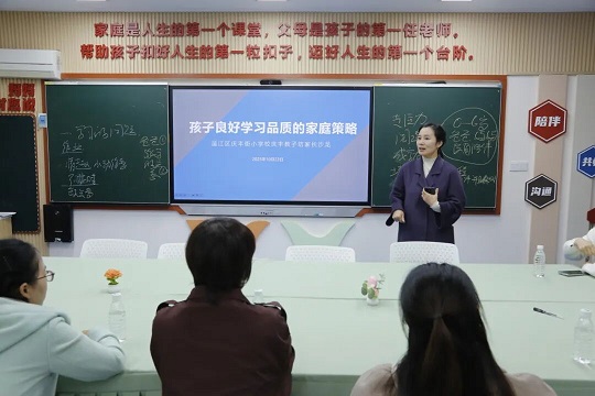 为深入贯彻《中华人民共和国家庭教育促进法》,响应国家家庭、家教、家风建设号召,搭建家校协同育人平台,10 月 23 日下午 3 点 30 分至 5 点,温江区庆丰街小学校针对一年级学生家长,成功举办 “孩子良好学习品质的家庭策略” 主题沙龙活动。24 名一年级学生家长参与活动,活动由温江区 “美在 e 家” 幸福使者、王永华家庭教育专家工作室成员王雷老师主讲。